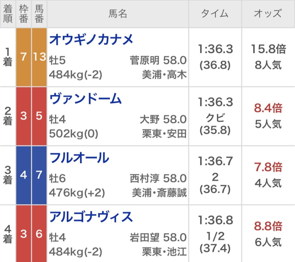 オオギノカナメの2走前のインパクトが記憶にあったけど、
