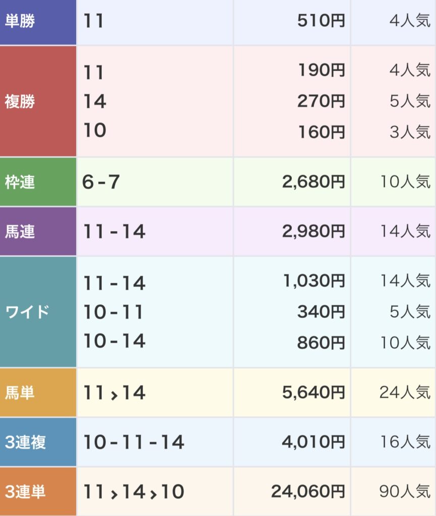 ただ、上記結果を見て、3連複の配当が意外とつくなと感じました。